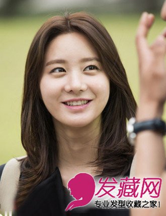 典型的韩国圆脸女孩,中分发型展现出甜美乖巧的一面,自然微卷发型,阳光般的笑容,散发出纯真正能量。