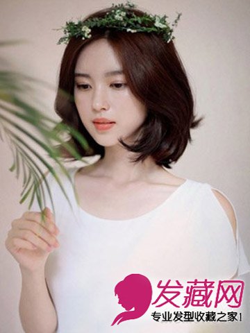 这款中分短发也是大脸女生必学的一款修颜发型,中短发微微烫卷的设计更加突出女人味,搭配发饰,小清新范儿十足。