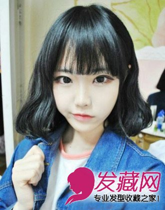 齐颈的黑色短卷发,看起来小巧可爱,搭配稀薄的齐刘海设计,凸显出mm闪亮的大眼睛,显得非常可爱,轻松打造出一个甜美的萝莉妹子。