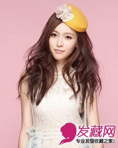 巧克力色的卷发披散在肩上,搭配上黄色的小礼帽,一种清新公主范儿。