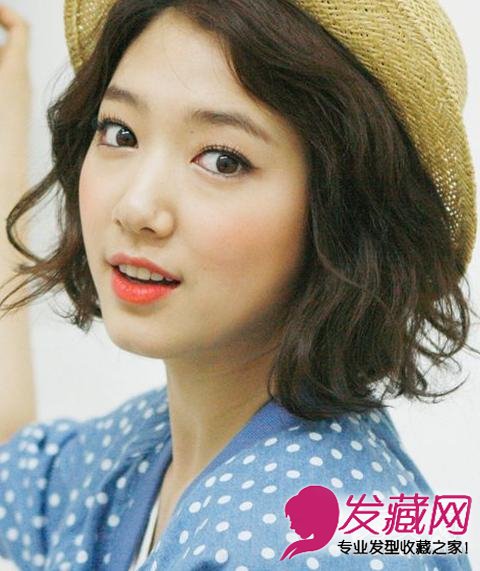 【韩式bob头卷发】朴信惠圆润的脸庞非常具有亲和力,活脱一种天然无公害的感觉,这种bob头卷发搭配田园风的草帽,清新到不得了。