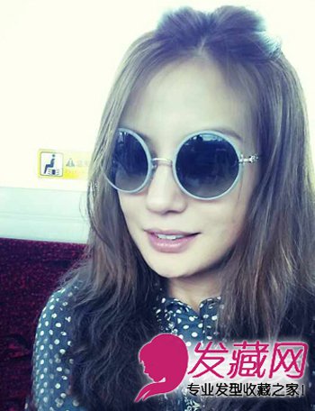 中分发型也可以效仿赵薇,把刘海微微夹起来,蓬松可爱,戴卡哇伊哈哈镜,俏皮感十足。