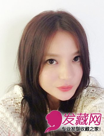中分发型不仅显瘦,更增加气质,对于圆脸型,拜托了微胖的烦恼,配上简约的微卷发,温柔女人味十足。