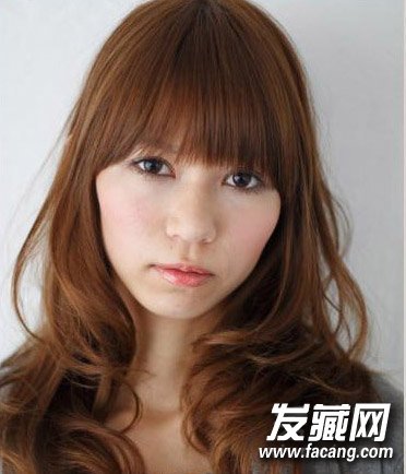 发型点评:碎发长刘海遮盖住整个额头,刘海与脸颊两侧的发束完美衔接,遮盖住过宽的颧骨。