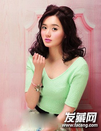 日系的猫耳发型也是非常可爱的一款扎发发型哦,时髦的小卷发,发顶挽起蓬松发髻,凸显圆脸女生的萌感,粉嫩的妆容,绿色裙装,糖果女孩惹人爱。
