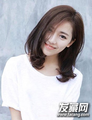 内扣的中发发型属于职场轻熟女的气质设计,侧分的齐肩发型,简约大方,发尾的丰盈内卷知性甜美。
