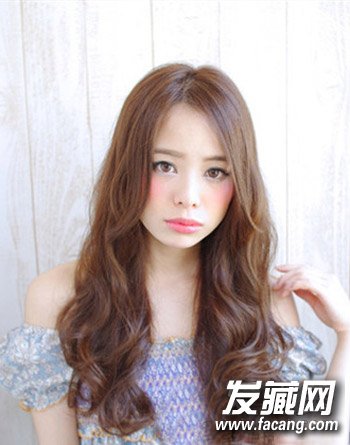 宽脸女生适合的发型 气质长发色玉米烫发发型(8)