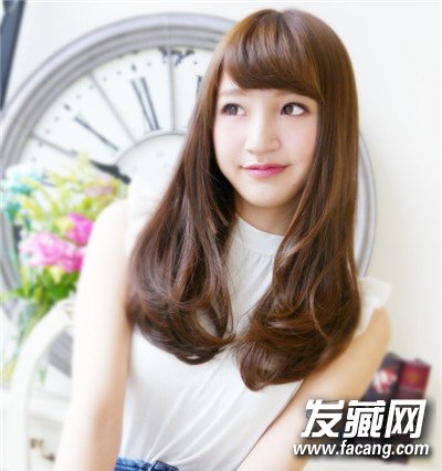 的圆脸MM,小编就要推荐这款发型了,用整齐的内扣刘海修衬出小巧可爱的脸型,发尾修剪整齐衬托出无限清纯的气质。