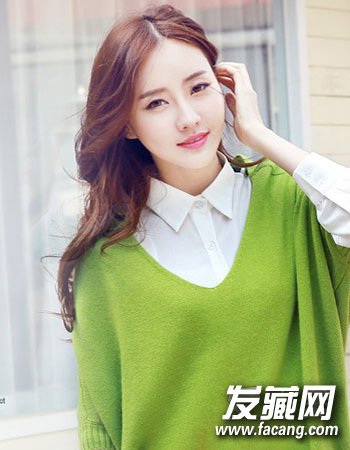 利用的是清新自然的棕红色染发设计来增添女生肤色的白皙水嫩感,而配合这种时尚的中分造型与精致的妆容相搭更添优雅温柔风。