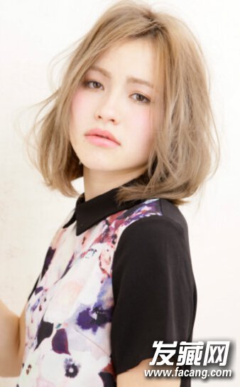 一款非常简约大方的短发发型,齐肩的短发长度清爽自然,侧分的长刘海修饰不完美的脸型,金色的染发时尚又能提升气质,潮女美眉必选!
