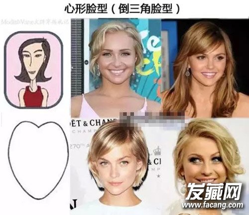 特点:心形脸又称倒三角脸,作为一种潮流中备受追逐的脸型,妩媚、柔弱有女人味,所以心形脸姑娘需要注意的是过于宽阔的额头,对其进行合理的修饰即可。