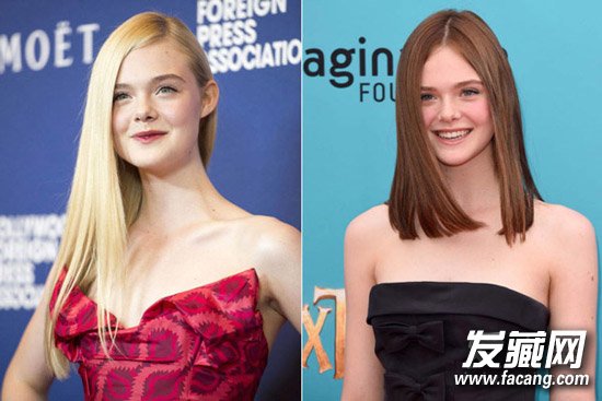 金发的elle fanning像是童话里走出来的公主,但是圆润的脸颊让她似乎还稚气未脱,而染了深发色之后,elle不仅成熟了,也看上去更加清瘦。