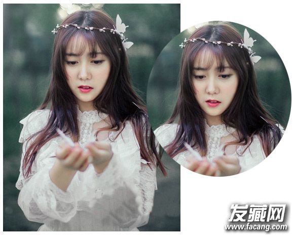精致的长发烫发与公主裙搭配起来,空气刘海时尚大气,搭配上轻盈灵动的发饰颇显甜美。