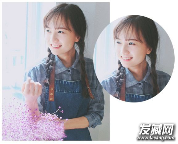 俏皮可爱的一款圆脸中长发扎发发型,空气刘海与娃娃脸搭配起来勾勒出个性与时尚的一面来。