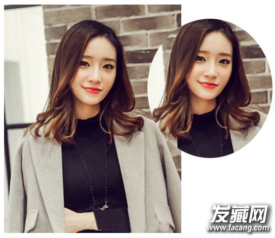 搭配的是清爽的偏分露额发型设计,而与深浅不一的棕黄色染发相搭,中分发发梢的微烫设计同样温柔吸睛。