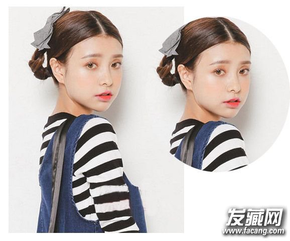 可爱的一款中分扎发发型,编发盘发与发饰搭配起来,不仅可爱而且时尚,整个造型清新甜美。