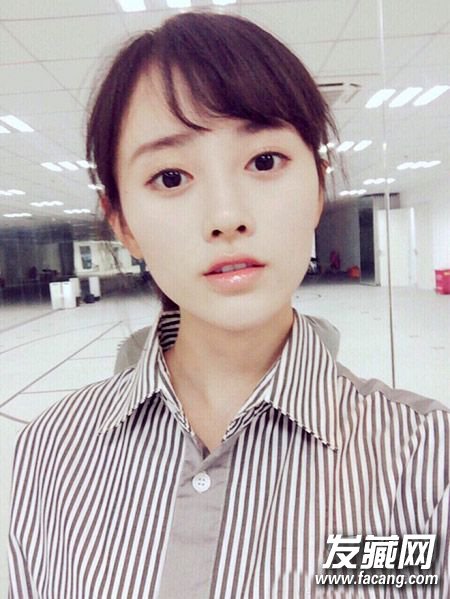 4、最近火起来的心形脸,也超级合适齐刘海。完全是童颜的感觉