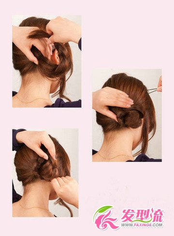 中把剩下的头发用橡皮筋全部扎到一侧(模特是在右边)。
