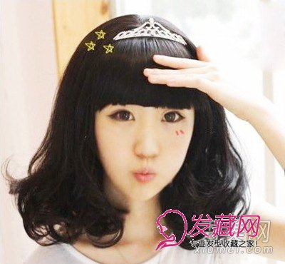 黑色的发色打造出森系女生风格,齐刘海的梨花头可爱甜美,搭配皇冠的发饰充满公主气息,给人韩系风格公主味道。
