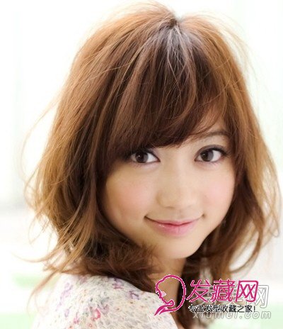 将齐刘海微微的侧分,发尾围绕着脸型做成内扣的效果,蓬松的发质充满了空气感,显得女生精灵可爱,减龄效果同样很不错。
