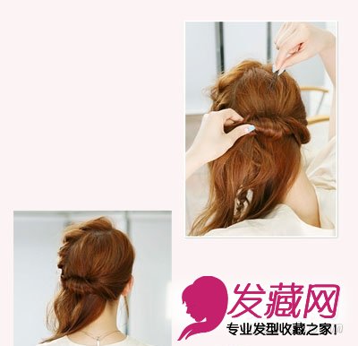 STEP 3在剩下的头发中选取大约四分之三的头发,我们从右往左边把发束扭转至刚才的编发处,并以黑色发夹加以定型固定,至于剩下的四分之一发束我们让它自然搭在胸前。