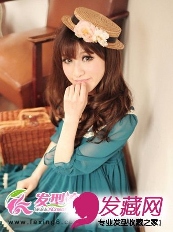 这款轻碎刘海中长发梨花头的造型增添了美眉甜美气质系数,发稍打造出内卷的造型正是梨花头的一大亮眼之处。十分甜美的梨花头搭配一顶小草帽,整个造型散发着田园风范女孩的甜美气质。