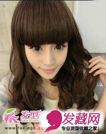空气感的梨花头卷发很好的避免了脸型的不足,凸显出女生的活泼可爱,修剪的很是整齐的平刘海,更是将女生的脸蛋打造的更加的尖细,黑色的发色让发型看上去更加有质感。