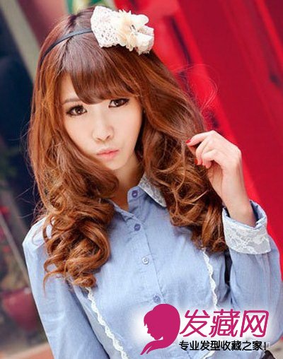 ,非常的富有时尚个性,衬托出女生一双灵气的眼睛,明亮有神,波浪卷发随肩披散,性感浪漫,搭配精美发箍,散发着浓浓的优雅气息。