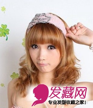 苹果刘海发型设计给人可爱萌系的感觉,粉色系带钻的发箍添加了可爱的元素,两边的鬓发很好修饰了圆脸,两边发梢内卷宛如两朵绽放的花朵,整个中长发梨花头配上女孩卡哇伊的表情打造一个芭比娃娃的感觉。