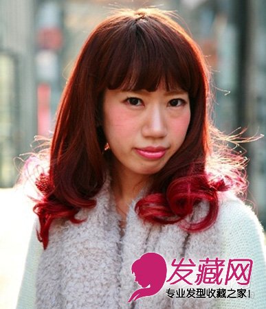 渐变染发依然大有市场,酒红的中长发,发尾变浅,变成鲜艳热烈的葡萄酒色,颇有韵味。