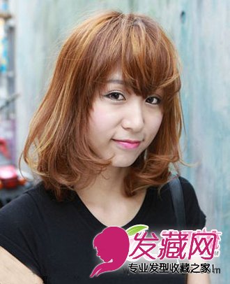 金棕色染发的梨花头发型,非常的潮流靓丽,不仅增加了梨花头的时尚魅力,也衬托出女生那白皙通透的肌肤,内扣的中长发梨花头,时尚优雅,略显蓬松凌乱感的发丝,修颜减龄,搭配随性的刘海发型,整个造型有着优雅自然的美感。