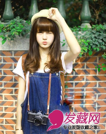文艺范儿齐刘海直发梨花头,加小礼帽搭配可爱俏皮。