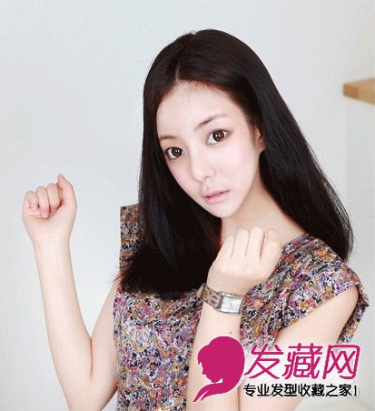 ,此款发型绝对让你倍显清纯。黑色的发色没有任何的修饰,凸显白皙的肌肤。蓬松的