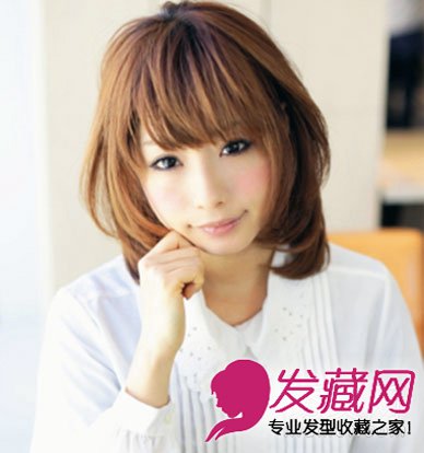 瘦脸梨花头发型 齐刘海的内扣梨花头发型
