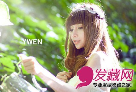 百搭的瘦脸齐刘海梨花头,搭配头顶端的发饰个性独特的森林系女孩味道十足。