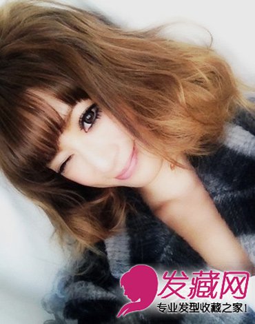 齐刘海的短发梨花头发型,一款具有日系风味儿的短发发型。在齐刘海上用了巧克力的染发,而两边的头发则是浅黄色的染发,非常的有个性。