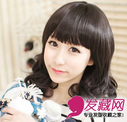 齐刘海的中长发梨花头发型,咋一看这款发型有没有想到水母这个动物呢?像花朵一般的烫发造型,非常的可爱。