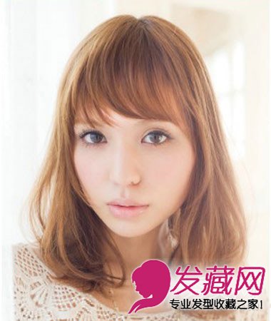 小编点评:轻薄柔顺的斜刘海顺着眉骨线显得轻盈而自然,显得眼睛大而有神。空气感十足的发尾清爽动人,两颊的稍稍内扣的发丝完美的修饰了脸型,女人味十足。