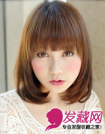 及眼齐刘海搭配内卷发尾营造出瓜子脸,板栗色头发有梦幻感觉,瞬间变成年轻萌妹子。