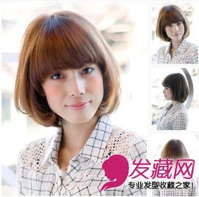 厚重的齐刘海加上简单的内扣式弧度,是否很令你心动?身在职场中,简单的发型最为适合了。像这样再染上款棕色染发,效果加分。
