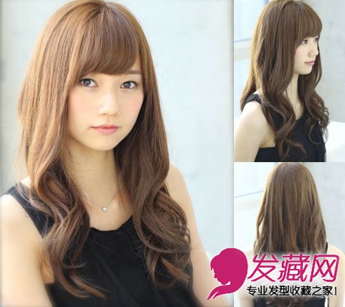 头发颜色比较深,衬出白皙肌肤。大波浪电发显优雅,提升整个人的气质。