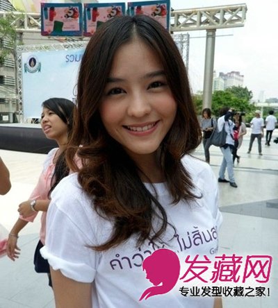 带有一点小蛋卷的发型也很适合国字脸的女生,自然的分开可以让你看上去更加甜美可人哦!这样的发型搭配也不错的!