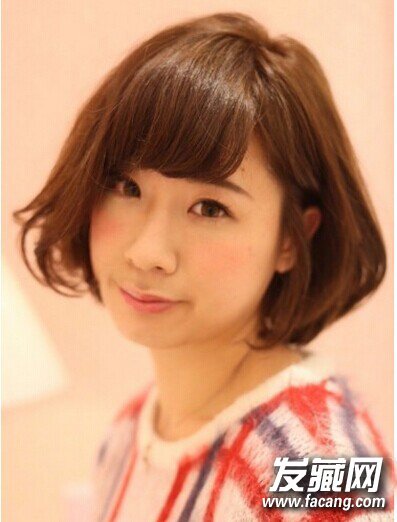 深棕色的染发搭配上内卷的烫发造型之后,齐刘海显得很有时尚的感觉,白领MM也可以尝试看看哦。