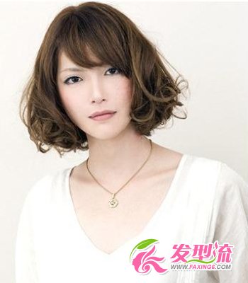 个性斜刘海发型 短短的烫发个性又显气质,看起来特别清爽,给人一种焕然一新的感觉。耳际开始烫出均匀整齐的卷度,打造蓬松效果。斜刘海和紧贴脸颊的烫发打造出小脸效果。染上前卫时尚的亚麻色,非常与众不同,个性又不失性感娇媚。