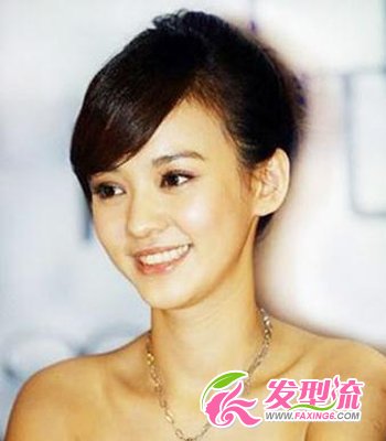 高贵斜刘海发型 自然乌黑的长发盘起,优雅清爽。斜刘海带着女人的妩媚,非常性感迷人,同时把姣好的面容修饰得更加无暇。盘发搭配斜刘海,尽显高贵气质又美丽动人,绝对是出席宴会的好选择哦!