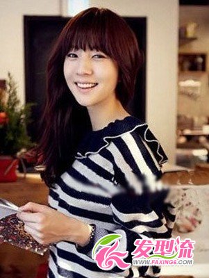 姑娘们是不是很爱这款披肩的齐刘海发型呢?因为这样的平刘海很适合长脸的女生,齐刘海可以将脸型缩短,自然蓬松的卷度加上偏酒红色的染发,整体搭配有五颗星。这样的发型搭配一些简单的服饰就很淑女。