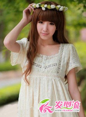 就好像刚从田园刚走出来的姑娘一样。厚重的平整刘海很完美的将长脸隐匿,披肩的微卷发更是为少女增添了数不清的可爱和甜美,这样的发型搭配一些简单的妆容就很好看。也可以像图片上的姑娘一样搭配清新的服饰,清纯迷人哦。