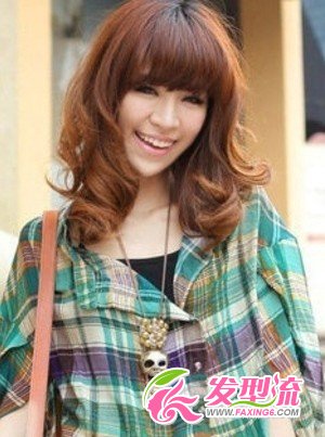 有点带内扣弧度的平刘海有很好的减龄效果,轻熟女不妨一试!头发整体看上去蓬松自然有,从发干出利用较好的烫发技巧制造出立体感十足的卷度,女人味在不知不觉中增加了,搭配休闲服饰和女人味服饰都个不错的选择!