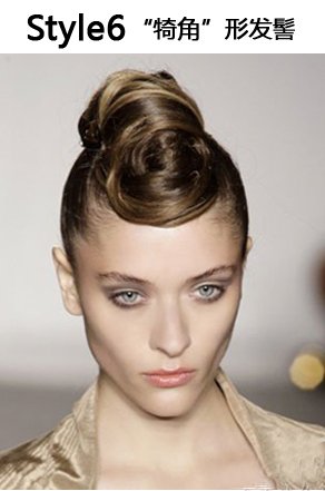 Style6:“犄角”形发髻 “犄角”形的发髻,别具一格,俏皮又不失优雅,再加上利落的盘发, 完美 展现脸部轮廓,极富巴黎风情,柔韧而优美。