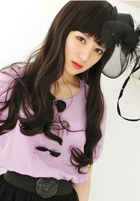 蓬松卷发+平刘海,可爱女生最爱造型。略微凌乱的卷发散披在肩上,温文尔雅的小女人气质立即呈现,加强平刘海的蓬松感更能提升可爱度。